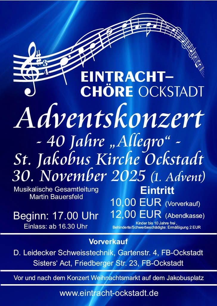 Wir laden herzlich zu unserem diesjährigen Adventskonzert am 30.11.2025 ein!