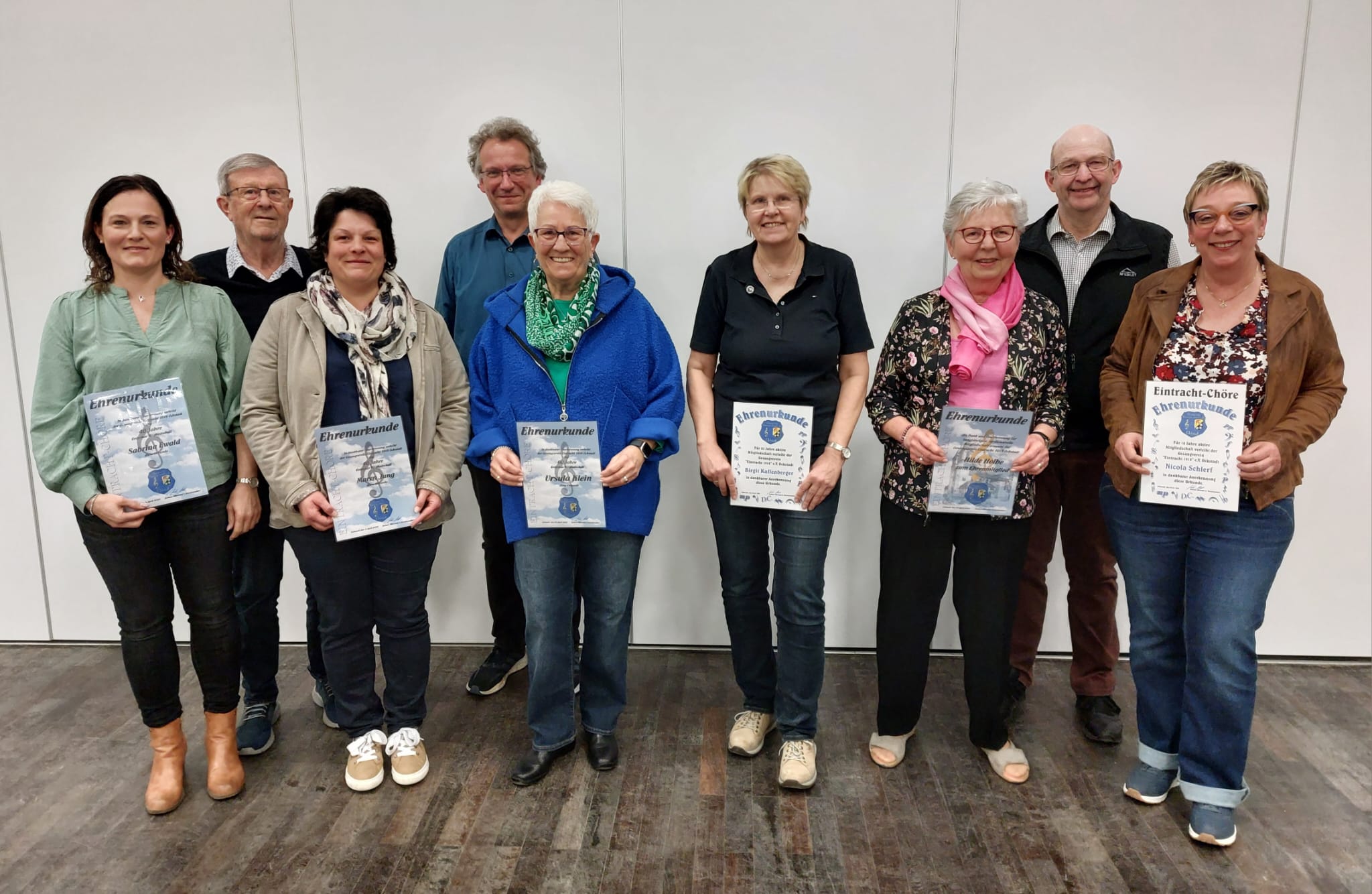 Auf der Jahreshauptversammlung der Eintracht-Chöre Ockstadt standen unter anderem. Vorstandswahlen sowie Ehrungen langjähriger Mitglieder auf der Tagesordnung.